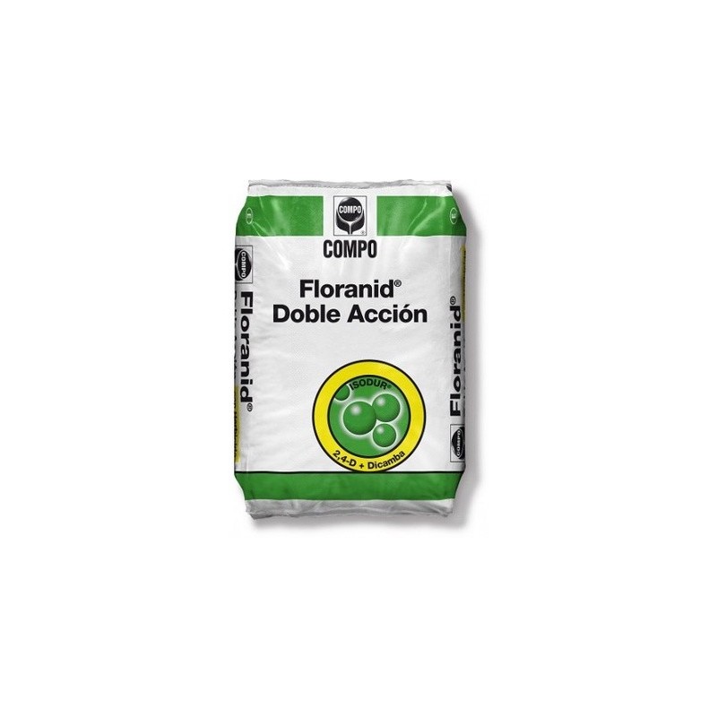 Floranid® Doble Acción es un exclusivo producto 2 en 1 que aporta al césped en una sola aplicación un abono de liberación lenta y dos eficaces y selectivos herbicidas, satisfaciendo así todas sus exigencias nutritivas y protegiéndolo a la vez de las malas hierbas. Floranid® Doble Acción incorpora 2,4-D y Dicamba, dos herbicidas selectivos que eliminan las malas hierbas de hoja ancha más habituales en el césped.