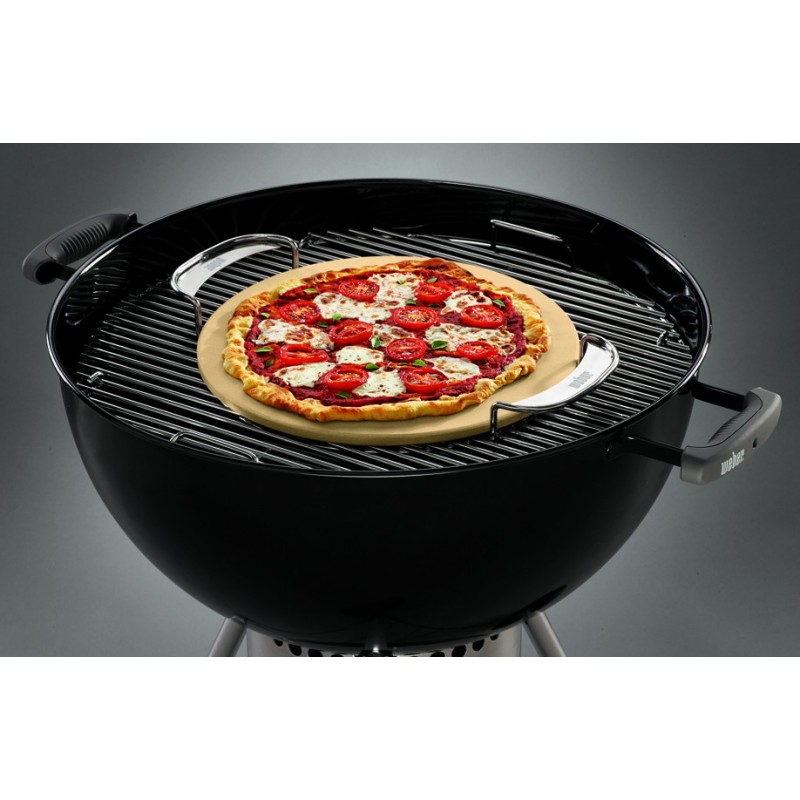 La Piedra para pizza Gourmet se adapta sobre las parrillas gourmet para barbacoas de carbón Weber de 57 cm. de diámetro