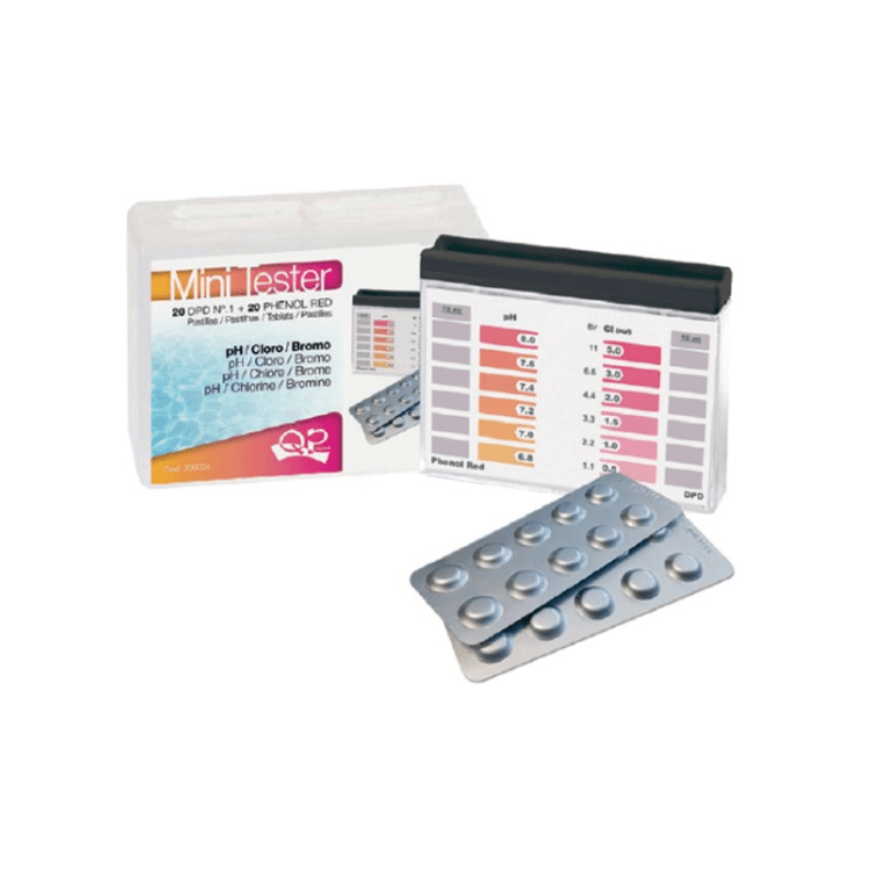 Para realizar mediciones de Bromo/Cloro libre o residual y pH. Ideal para piscinas. Lectura de cloro en un rango de 0,5 a 5 mg/litro, bromo de 1,1 a 11 mg/litro y pH de 6,8 a 8,2. Comprimidos reactivos en una ampolla práctica.