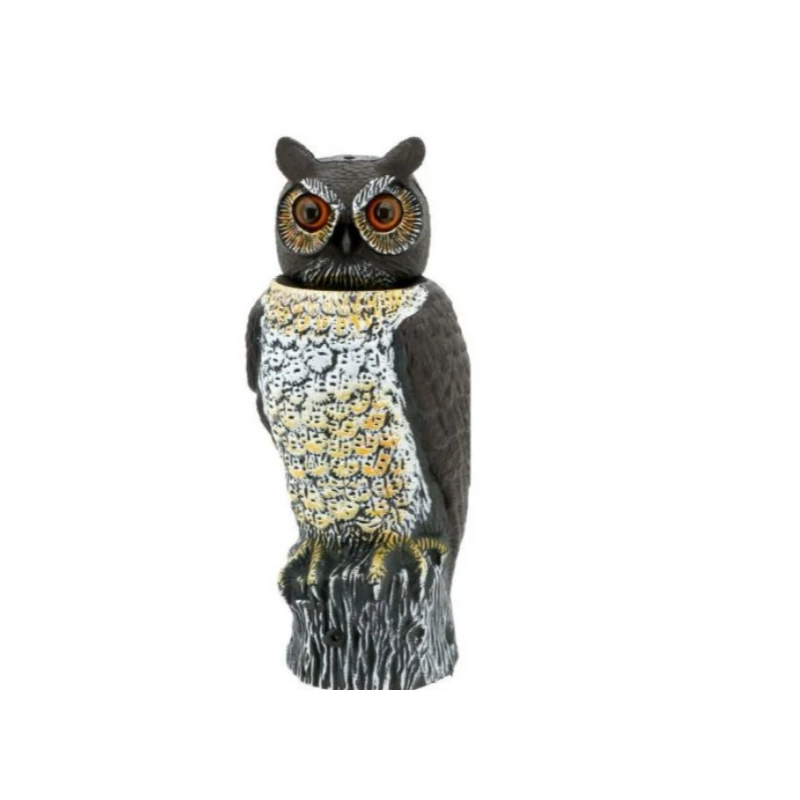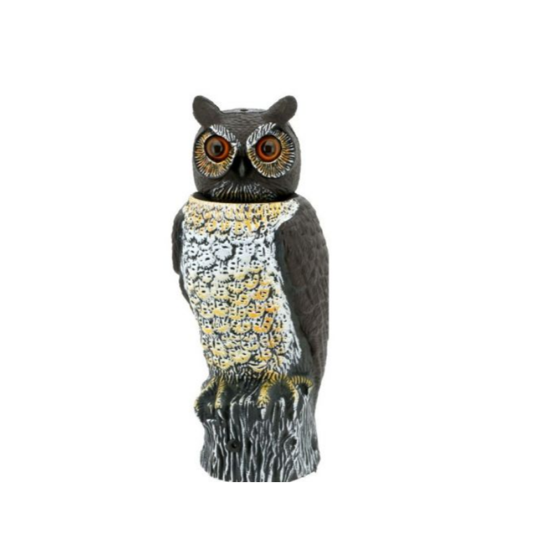 Fabricado de manera sólida y robusta, resiste las inclemencias del tiempo sin dejar de ser ligero y fácil de transportar. De gran calidad y apariencia natural, decora y protege tu jardín y árboles frutales de pájaros y otras plagas. El búho es el ave rapaz más temida, ya que captura y se come muchos pájaros como: palomas, estorninos, gorriones, patos, etc. Por ello será un guardián perfecto para parques, jardines, tejados, puertos deportivos, campos de golf y áreas abiertas en general. Se coloca en cualquier lugar, el aire al mover la cabeza ayudará a espantar a los molestos.