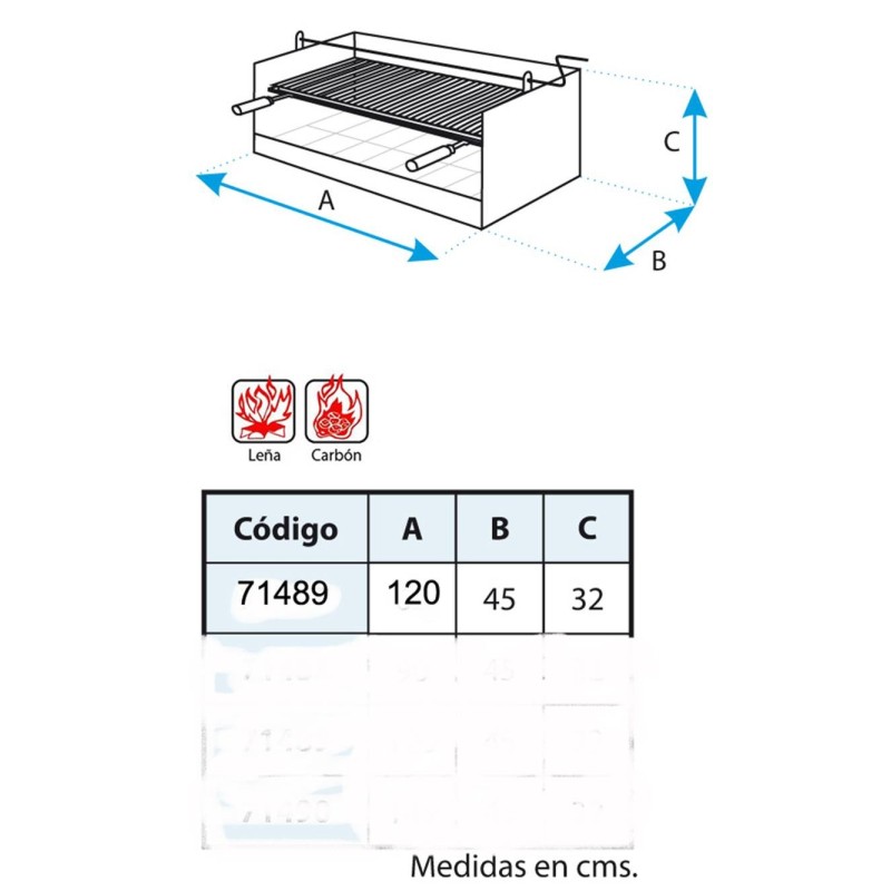 Medida de la Parrilla: 115 x 41 cm