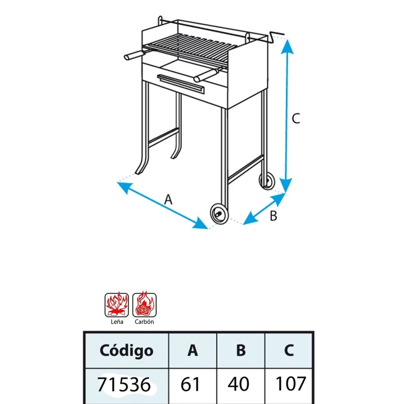 Barbacoa Con Elevador y Parrilla Inox 61X40X107 cm Imex El Zorro