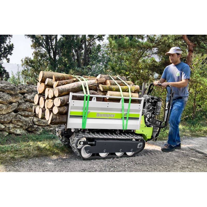 Carretilla de orugas potente y versátil, el Dumper 507 es ideal para transportar todos tipos de materiales en los más diversos sectores. En el campo, en las obras, en la nieve, en agricultura, zootécnica, industria, distribución y jardinería. La tracción completamente mecánica permite aprovechar al máximo la potencia del motor, las orugas de goma con malla de acero permite la tracción en suelos con escasa poca adherencia, en suelos friables y con fuertes pendientes.