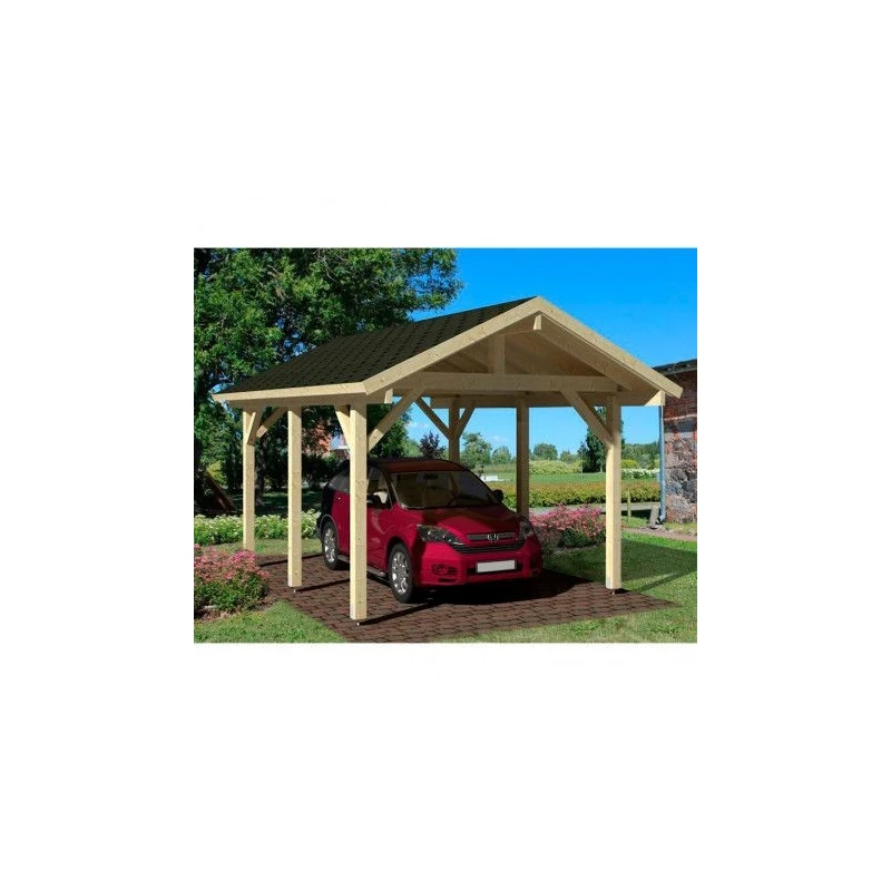 Esta pérgola de madera para coches y otros vehículos se caracteriza por sus gruesos postes y calidad en acabados, ya que se ha fabricado empleando madera de abeto nórdico. Tejado a dos aguas con teja o tela asfáltica....