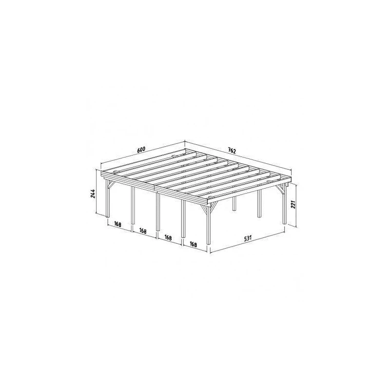 Cabaña de madera Ella de 13,1 m2 está compuesta con madera de abeto nórdico de muy buena calidad. Aconsejamos en caso de elección sin tratamiento Pintura de barniz al agua ó Pintura lasur para que penetre...