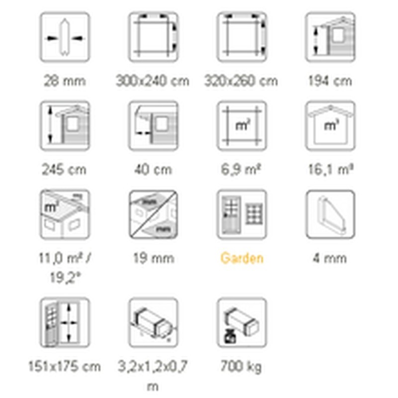 Caseta de entramado ligero Charlotte está fabricada de madera de abeto nórdico de alta calidad. Ventanas son oscilo-batientes con de doble cristal para tener una insonorización. Aconsejamos pintura barniz al agua ó...