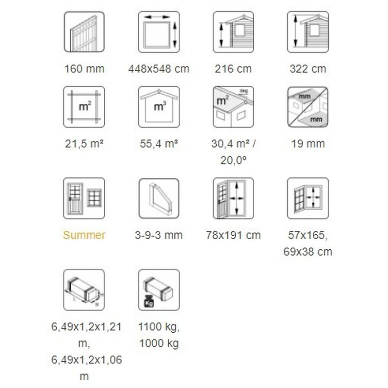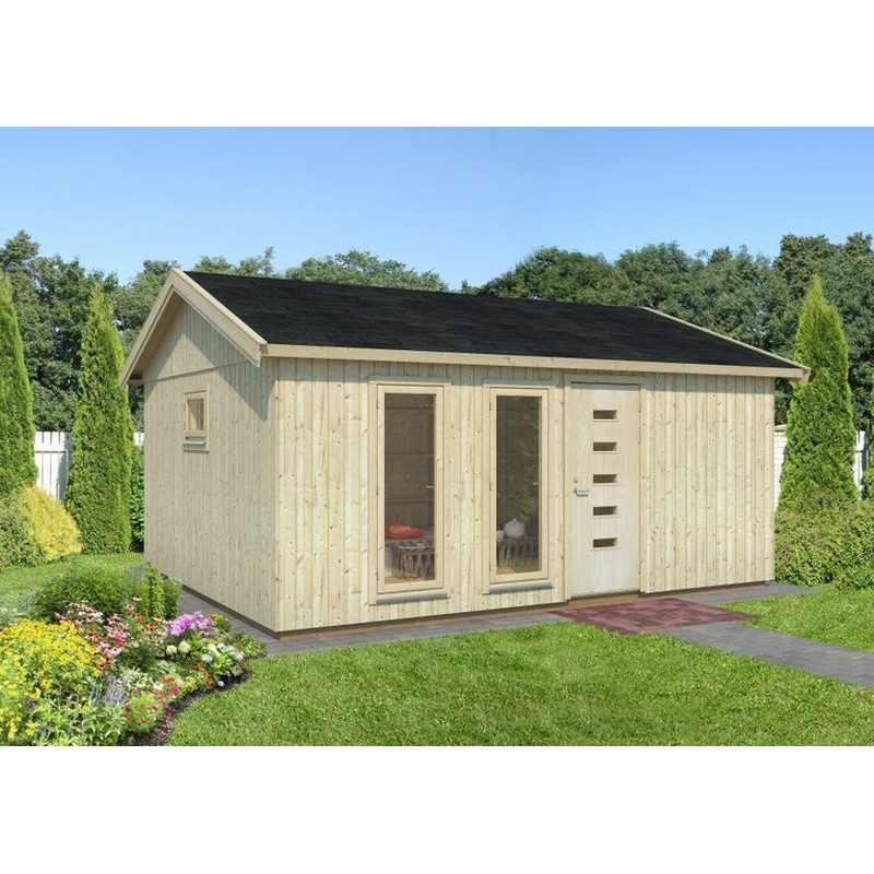 Caseta de entramado ligero Charlotte está fabricada de madera de abeto nórdico de alta calidad. Ventanas son oscilo-batientes con de doble cristal para tener una insonorización. Aconsejamos pintura barniz al agua ó pintura lasur que penetra profundamente en la madera dejando respirar a la madera y no formando una película. Tiene 5 años de garantía.