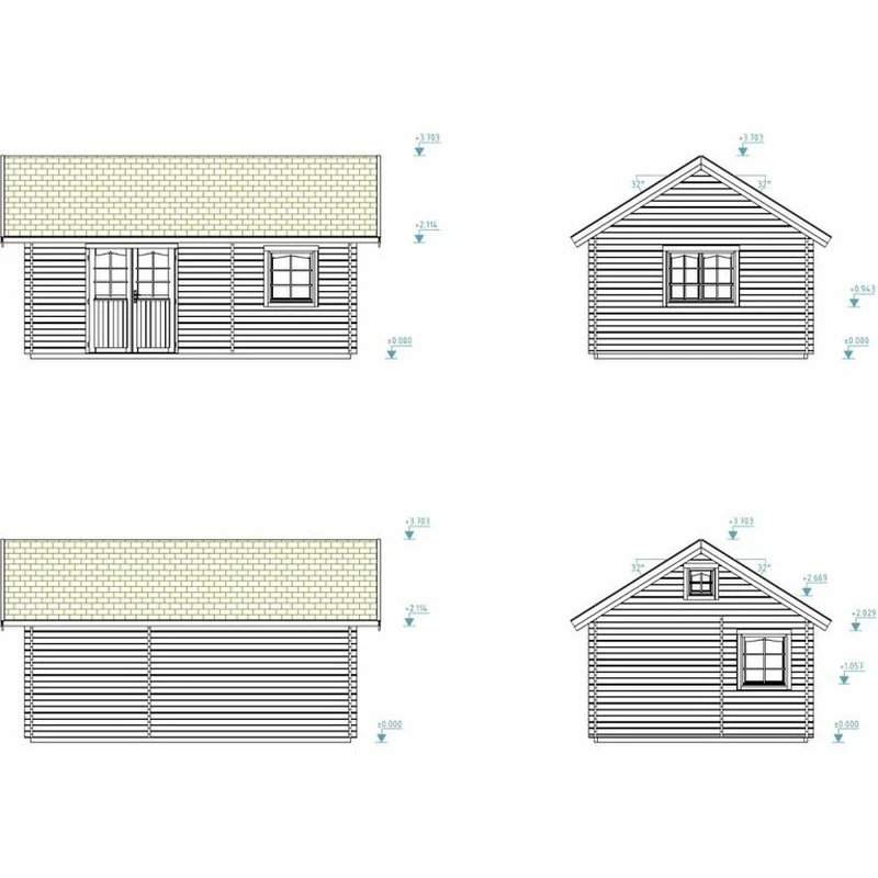 Está fabricado de madera de abeto nórdico de alta calidad con un acabado en las esquinas recto para mejorar la resistencia al viento y la lluvia. Se caracteriza por su gran comedor, y por tener un altillo encima del baño y habitación principal. La parte delantera de la casa tiene un alero de 50 cm. Aconsejamos pintura barniz al agua ó pintura lasur que penetra profundamente en la madera dejando respirar a la madera.
