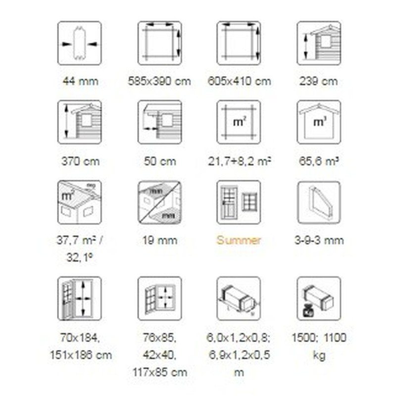 Palmako Casita De Fin De Semana Sandra 29.9 m2 ( 605 x 410 cm )