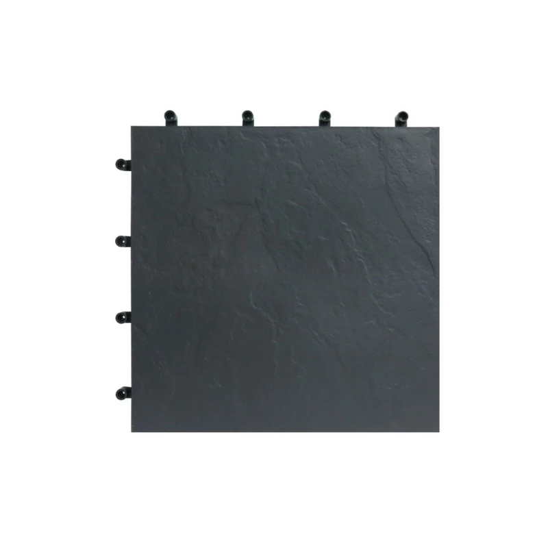 Loseta de propileno ideal para su montaje en el interior de las casetas Grosfillex con textura imitación pizarra, estas losetas además de ser estéticas se colocan fácilmente sobre un suelo plano sin necesidad de usar utensilios.