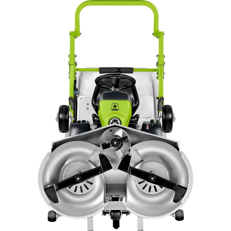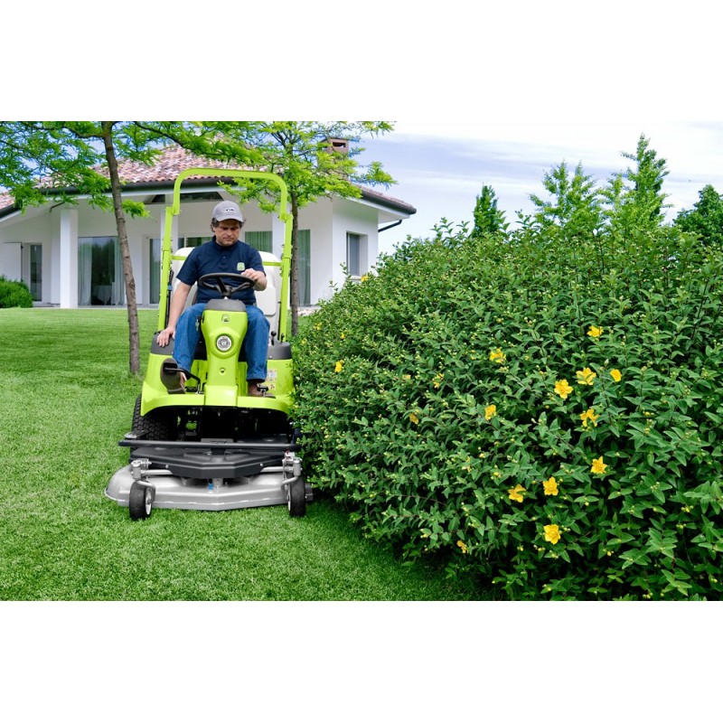 Cortacésped hidrostático. El sistema de corte innovador "Grillo Overblow" permite una aceleración del flujo aire - césped dentro del canal lo cual aumenta notablemente la capacidad de carga incluso en condiciones de elevada humedad. Garantiza un corte preciso incluso bajo arbustos o ramas, limitando el uso de desbrozadores manuales. Está equipados de refuerzos adicionales en la parte frontal y lateral. La posición de conducción es ergonómica. El puesto de conducción es amplio y confortable, el asiento está equipado de suspensiones regulables que se adaptan al peso del operador.