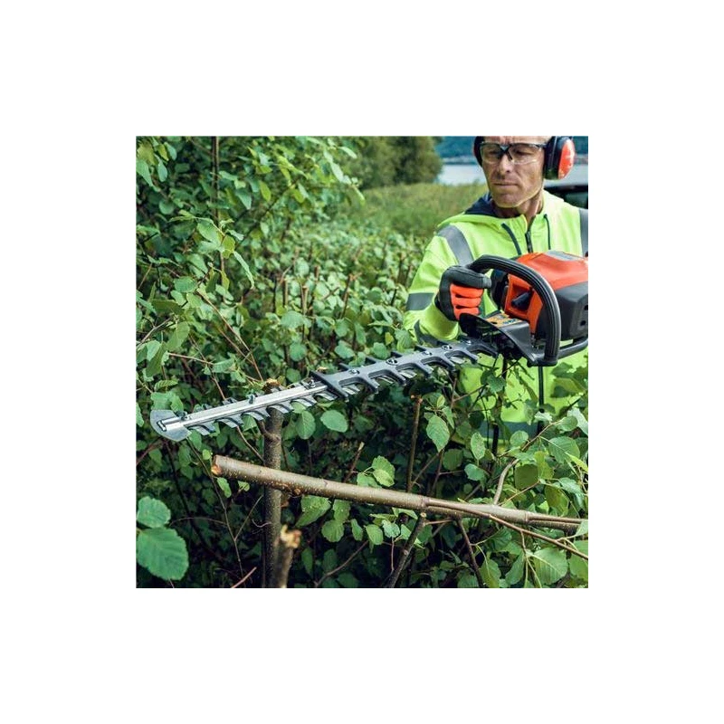 522HD60X está equipado con una espada de doble filo cuya longitud es de 60 cm (anchura de los diente: 30 mm). El cortasetos trabaja con una velocidad de corte de 4400 ciclos/min.