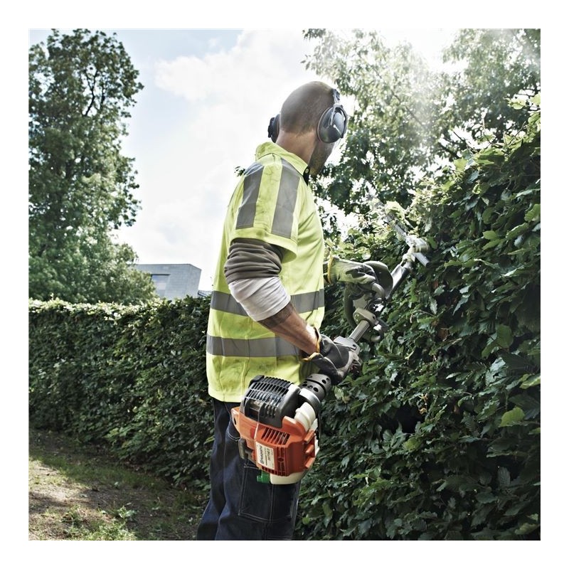 Cortasetos profesional Husqvarna con un alcance de hasta 3 metros para trabajos de gran altura. 525HE3 está equipado con un tubo telescópico, unidad de corte con ángulo ajustable, cuchilla doble asimétrica y motor X-Torq® de alto rendimiento. Modelo maniobrable, robusto y muy sencillo de usar.