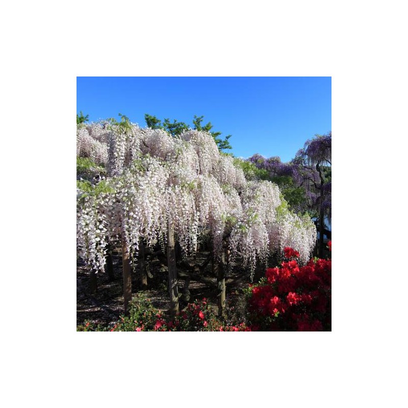 La wisteria es una de las plantas más utilizadas para cubrir grandes estructuras como pérgolas o paredes. Su espectacular floración, con inflorescencias colgantes de tonos principalmente lilas, blancas o rosadas, es una de las más llamativas y apreciadas de entre las plantas trepadoras, de hojas caduca. Producirá en primavera unos largos racimos de flores perfumadas. Las flores de la Wisteria también llamadas flor de la pluma.