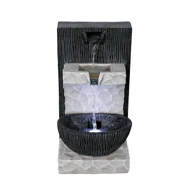 Elegante fuente de diseño, con líneas rectas y su iluminación mediante LED. Fabricada en poliresina es una mezcla de varias resinas especialmente resina de poliéster, material muy duradero, ligero y resistente. Válida...