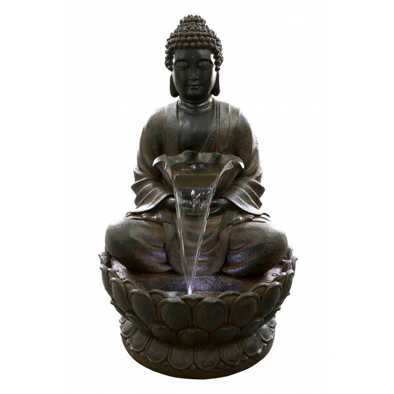 Fuente Buda, fabricada en hormigón, especial para exteriores. Viene con bomba de agua MIMOUSE que posee un caudal de 300 litros hora.