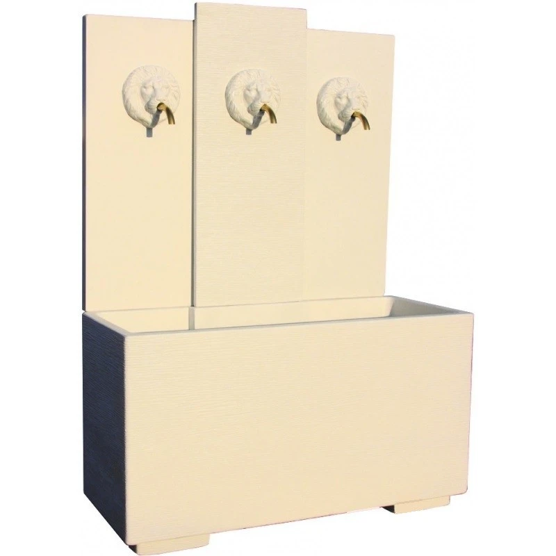Fuente de pared, práctica y decorativa, donde poder utilizar varias salidas de agua o como fuente, resistente a las inclemencias meteorológicas. Viene con una bomba de agua que lleva un caudal de 3700 litros por hora.