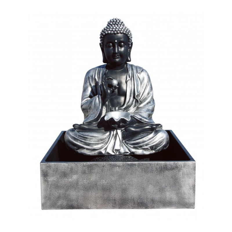 Fuente Buda fabricada en piedra artificial, con materiales de máxima calidad especialmente diseñada para el exterior. Robusta y sólida, preparada para aguantar las inclemencias meteorológicas. Se suministra con su bomba de agua de 800 litros hora y cable.