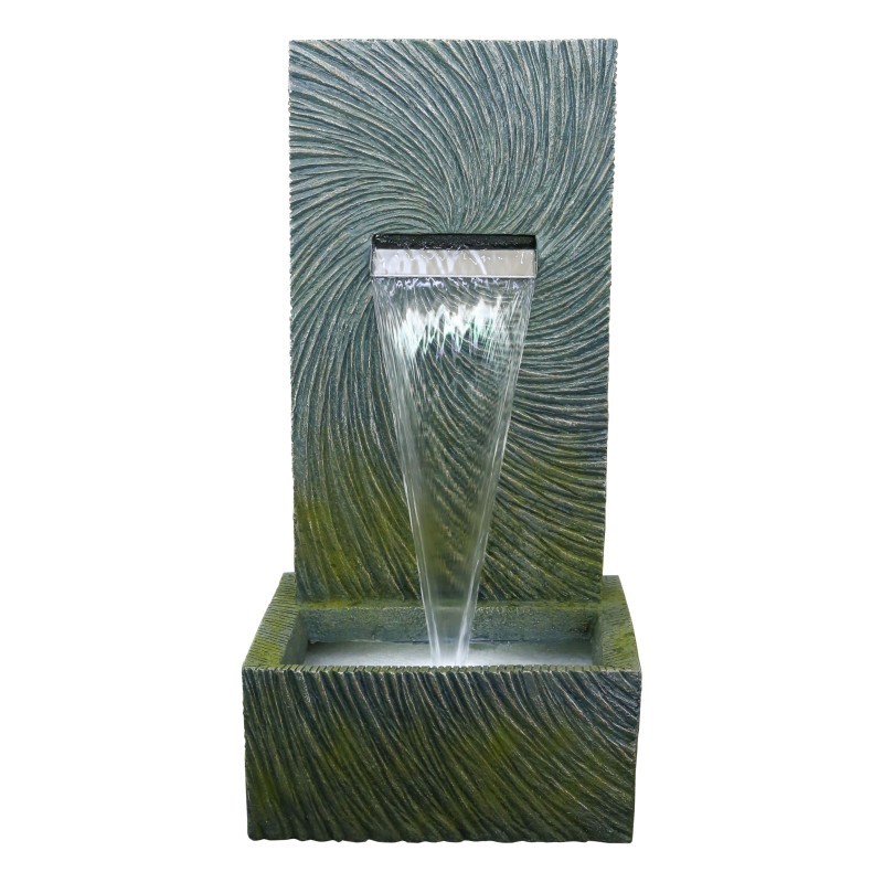Fuente de agua decorativa diseño atemporal imitando una cascada. Fabricada en poliresina material muy duradero, ligero y resistente, para interior y exterior con las que crear ambientes relajantes. Tiene un ciclo...