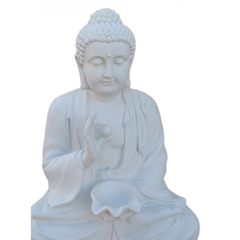 Figura decorativa de estilo oriental Buda de piedra artificial, especialmente diseñadas  para el exterior, sólidas preparadas para aguantar inclemencias meteorológicas. Para decorar jardines y terrazas, aporta al exterior de su hogar un toque personal de paz y serenidad.