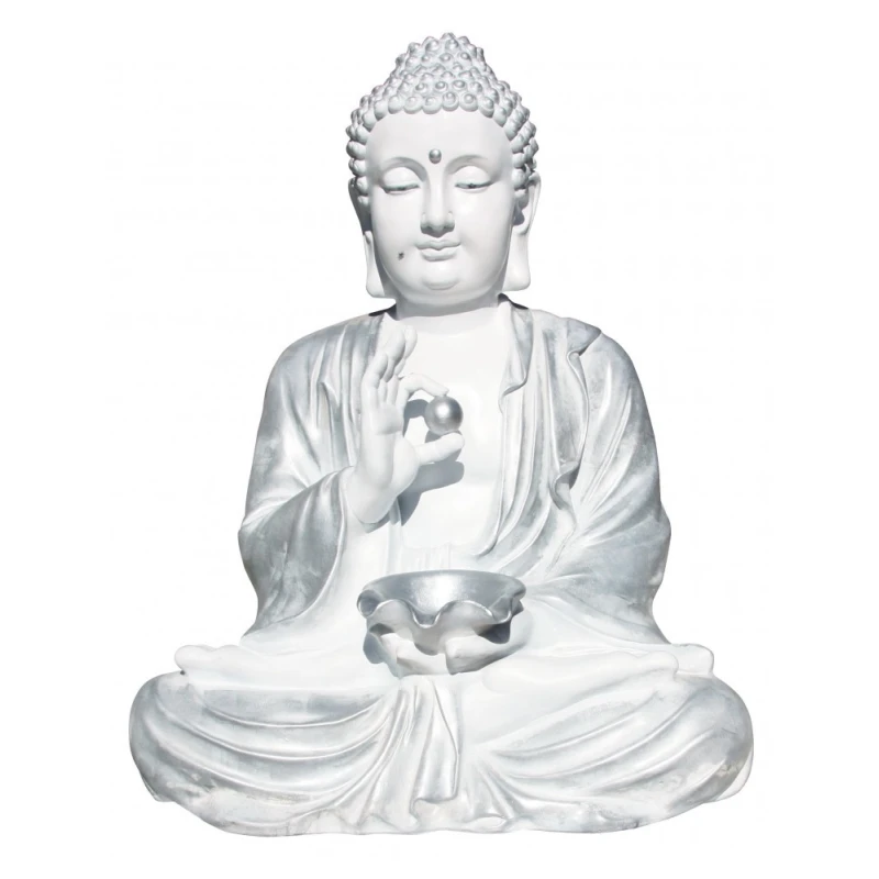 Figura decorativa Buda de piedra artificial, especialmente diseñadas para el exterior, sólidas preparadas para aguantar inclemencias meteorológicas. Ideal para decorar jardines y terrazas, aporta al exterior de su hogar un toque personal de paz y serenidad.