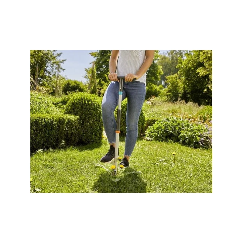 El recogedor de de malas hierbas de Gardena es la herramienta ideal para eliminar eficazmente malas hierbas antiestéticas en su césped y zonas de flores. Las cuchillas patentadas del Weed Puller están juntas y son particularmente estrechas, este diseño es muy adecuado para arrancar dientes de león en su césped. Puede trabajar con precisión, lo que es beneficioso para su césped, ya que solo hace pequeños agujeros. Hay un práctico reposapiés en el extremo inferior del dispositivo, lo que facilita la excavación en el suelo. Un mango de forma especial permite un movimiento cómodo al girar la cuchilla de deshierbe. El mecanismo de liberación integrado facilita la eliminación de las malas hierbas.
