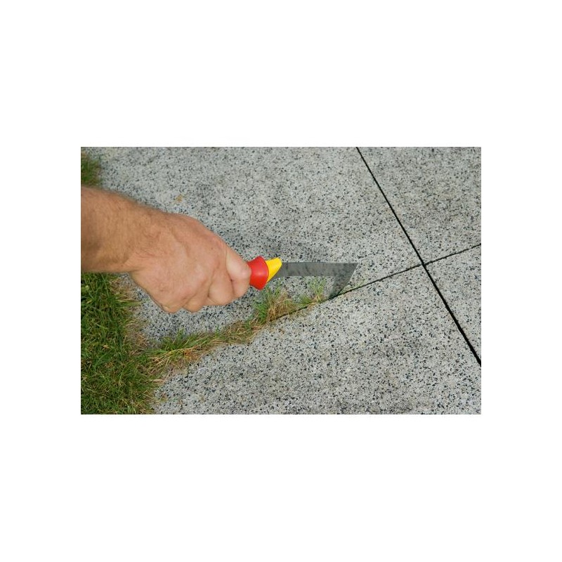 Este raspador KFK forma parte de la gama de herramientas pequeñas Special Ecological Weed Control. Hecho de acero galvanizado de alta resistencia, elimina eficazmente el musgo y las malas hierbas que crecen entre losas, adoquines o incluso a lo largo de sus bordes. Su ángulo recto mejora su eficiencia en una sola pasada.