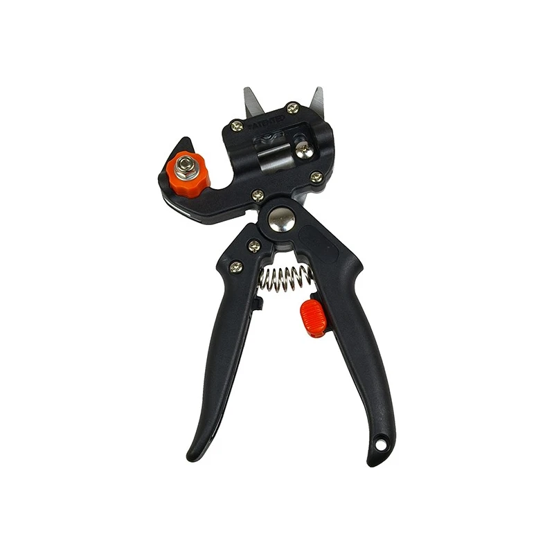 Tijera de injertar profesional. Realiza un corte rápido y limpio que favorece la curación del injerto. Válida para diversos tipos de plantas como frutales, viñedos, rosales, etc. Pequeña tijera de podar superior para limpiar la planta de ramas inútiles. Máxima calidad. Corte limpio y preciso. Alta durabilidad.