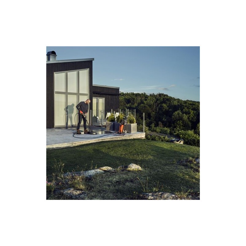 Máquina de rendimiento verdaderamente alto con un robusto y funcional diseño, para excelentes resultados y trabajos exigentes, como los vehículos y los muros de piedra. Está incluida una manguera de alta presión con refuerzo de aluminio. El mango cómodo Low Force activa el gatillo con menos esfuerzo y más confort. El motor de inducción y la bomba de metal aseguran un gran rendimiento, asa de aluminio. Acoplamiento de la manguera rápido, grandes y robustas ruedas para una mejor tracción, y una lanza de pulverización larga. Dos funciones de giro para el ajuste de la boquilla y acople rápida. Almacenamiento de los accesorios a bordo. Dos boquillas y un pulverizador para espuma incluidos.