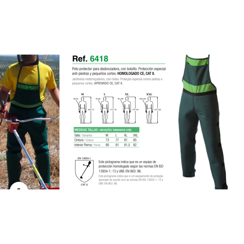 Arnés profesional para trabajos de desbroce. Terminación en alta visibilidad y reflectante.