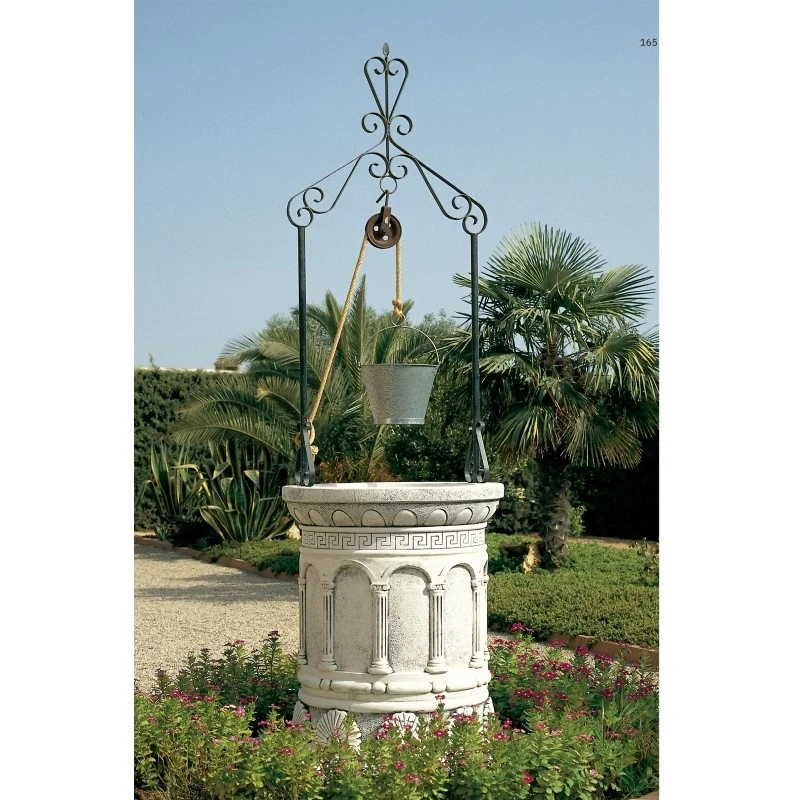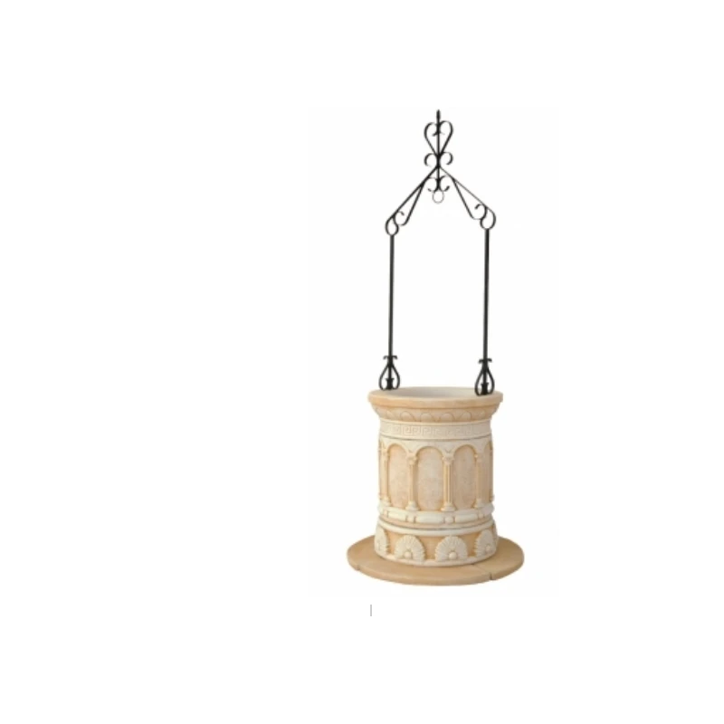 Pozo de jardín hexagonal con 6 azulejos pintados a mano y con un bonito y elegante arco de hierro, Fabricado en piedra artificial, hormigón, resistente a los factores meteorológicos. Entregado con todos los...