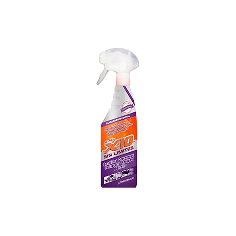 X10 es un potente limpiador multiusos que te facilitará la limpieza en alfombras, moquetas, tapicerias, manchas de silicona, en ropa, acero inoxicable, aluminio, lacado, persianas, azulejos, suelos, piedras, granito, plata, vinilos, muebles, cocina, baños, silestone, herramientas, lonas, hornos, motores, llantas, campanas extractoras, chimeneas, barbacoas, freidoras, mosquitos en lunas de vehiculos, moho, grafitis, bicicletas, embarcaciones, ¡ y mucho más!.
