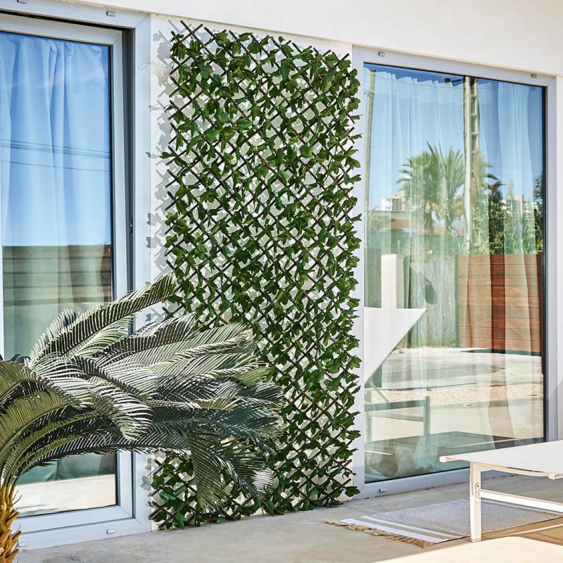Nuevo modelo de celosía extensible decorativa con hojas reforzadas y muy resistentes, evitando así su caída con el uso y el paso del tiempo. La composición de las hojas permite tanto ocultar como crear un espacio decorativo en la terraza o jardín. Hay 700 hojas.
