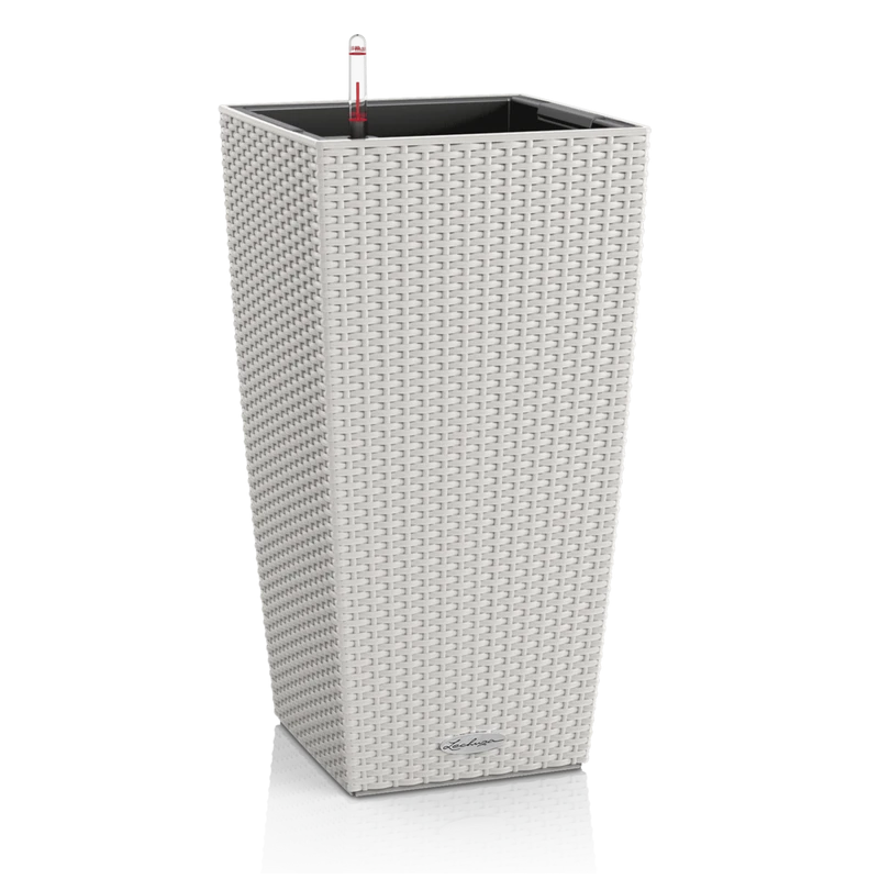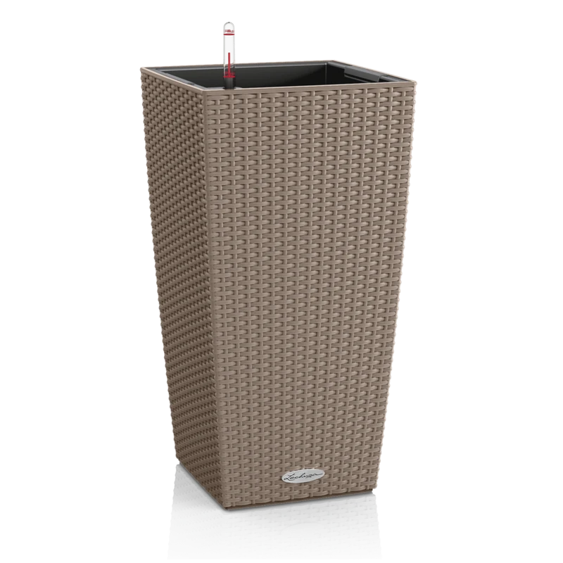 Con una superficie de estructura de mimbre aporta una sensación romántico y rústico. El suministro del agua a la planta se realiza a través de un sistema de riego inteligente, por lo que no requiere regar las plantas con frecuencia, combinando a la perfección el diseño y la funcionalidad. El control del agua se puede observar gracias al indicador de nivel de agua integrado.