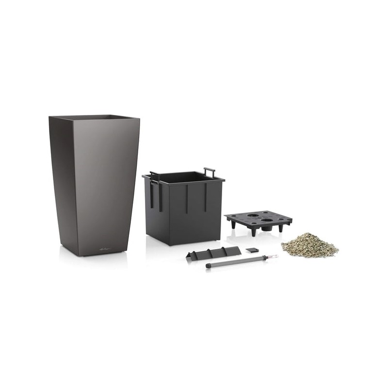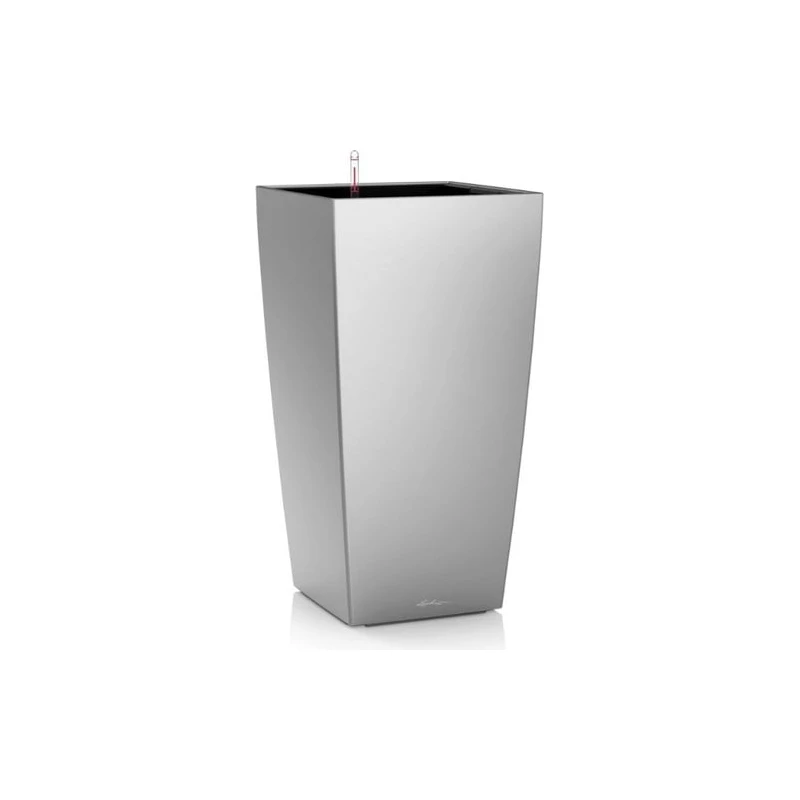 Maceta Cubico Premium 40. Ideal para plantaciones altas, incluye cubeta de plantado y set de riego de tierra. De esta manera, puede plantar y reemplazar fácilmente sus plantas. Cubico Premium da un toque especiales a apartamentos y áreas comerciales. Gracias a los colores clásicos y al acabado brillante o metálico, se puede colocar como elemento decorativo solitario.