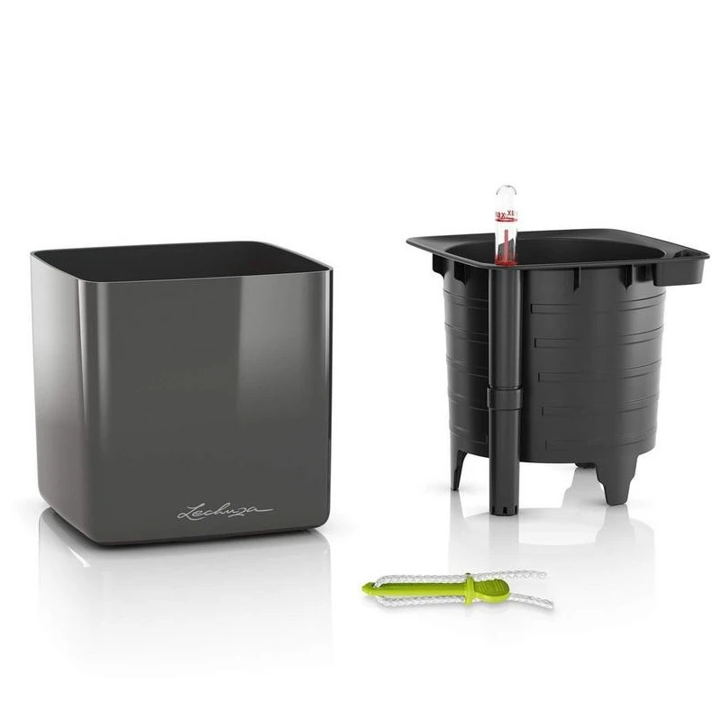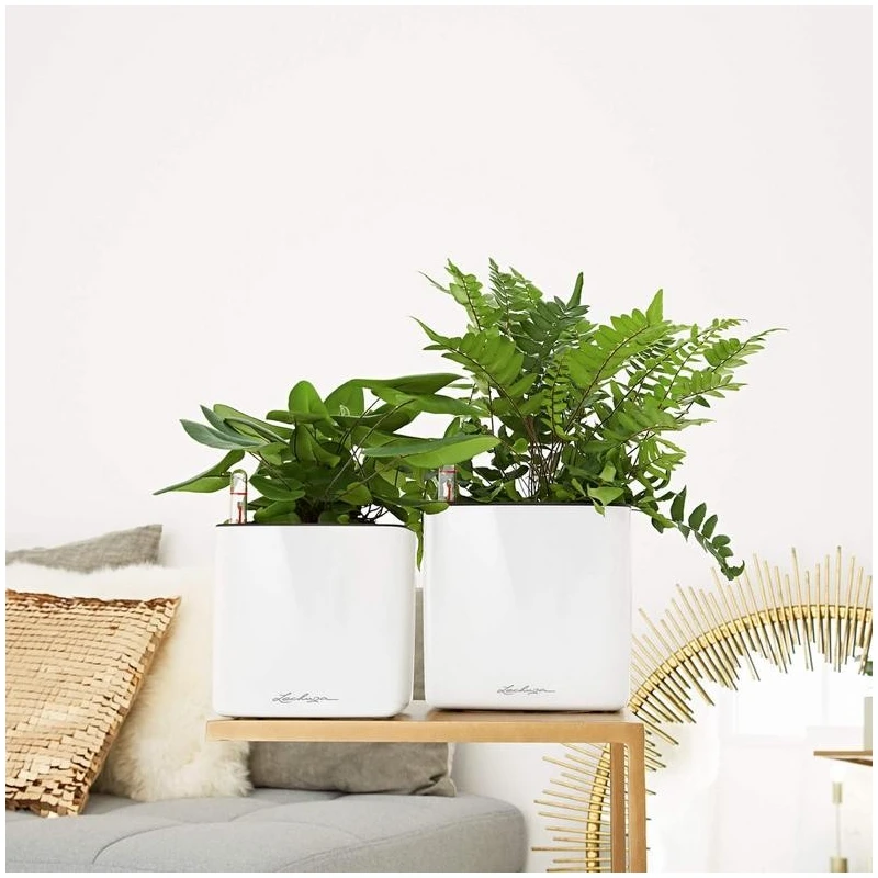 Un práctico florero para plantas en forma de cubo redondeado, ideal como decoración en la cocina, sala de estar o entrada. Las macetas no solo son elegantes, sino que también convencen por su sistema de riego integrado, que cuida de las plantas. ideal para las hierbas aromáticas en la cocina o como decoración moderna de la sala de estar.