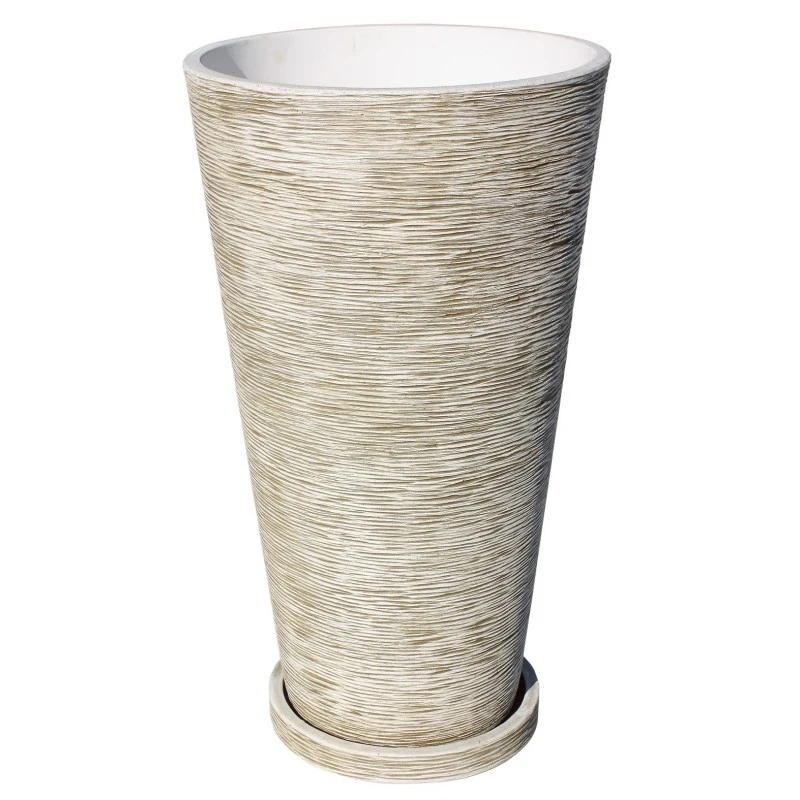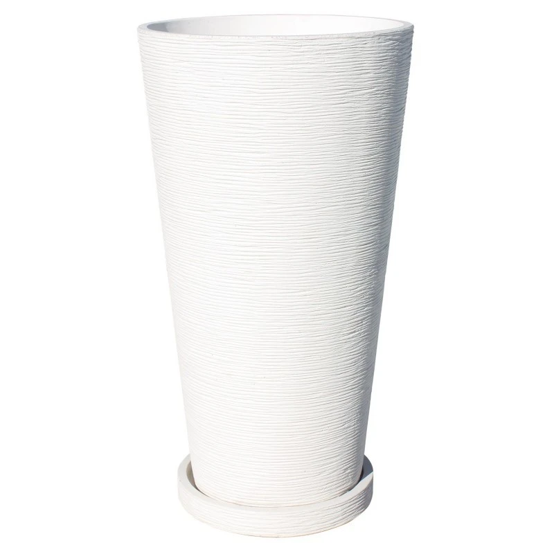 Macetero Hanoi fabricado en hormigón, resistente a las inclemencias meteorológicas. De estilo moderno y vanguardista, perfectas para decorar patios y jardines. Viene con plato, sirve para recoger el agua que drena...