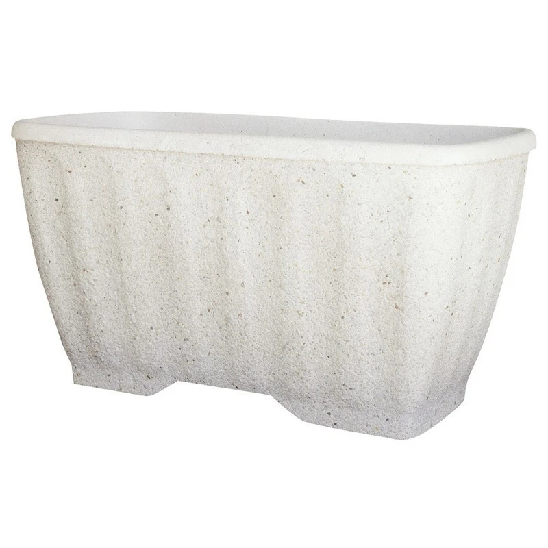 Macetero cuadrado granito "china lavada" y cantos pulidos. Resistencia máxima a la intemperie. Con patas incorporadas en el propio diseño es ideal para plantar flores de temporada y otras. Color granito blanco.