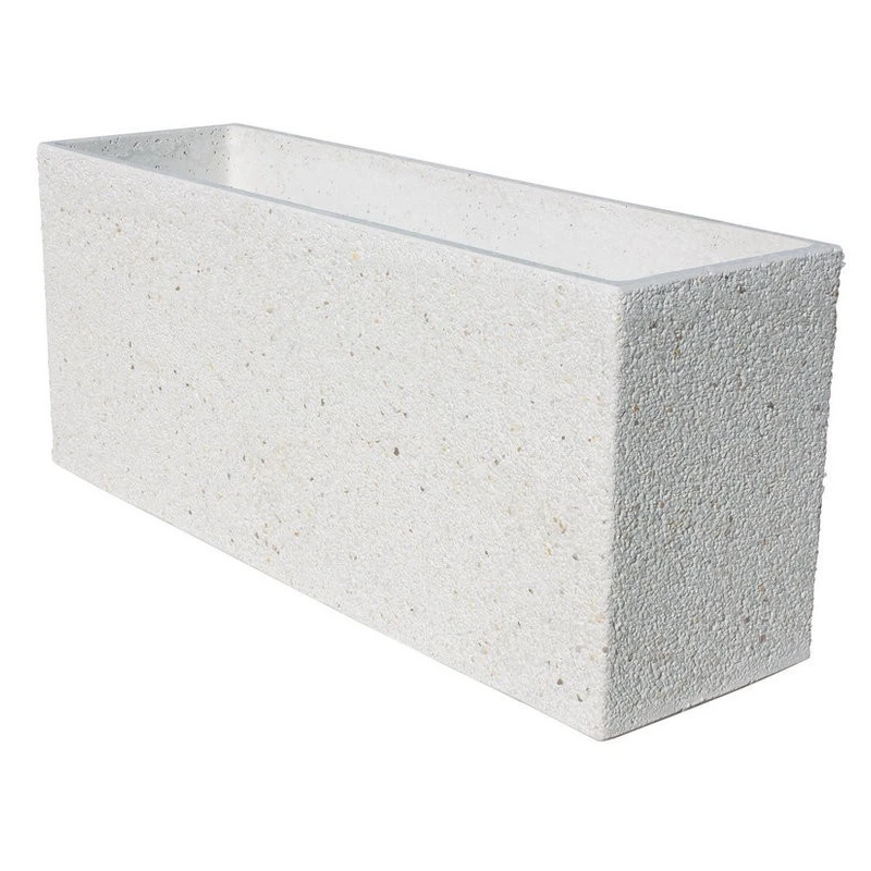 Jardinera rectangular granito "china lavada" y cantos pulidos. Con patas incorporadas en el propio diseño. Es ideal para plantar flores de temporada y otras. Resistencia máxima a la intemperie. Color granito blanco.