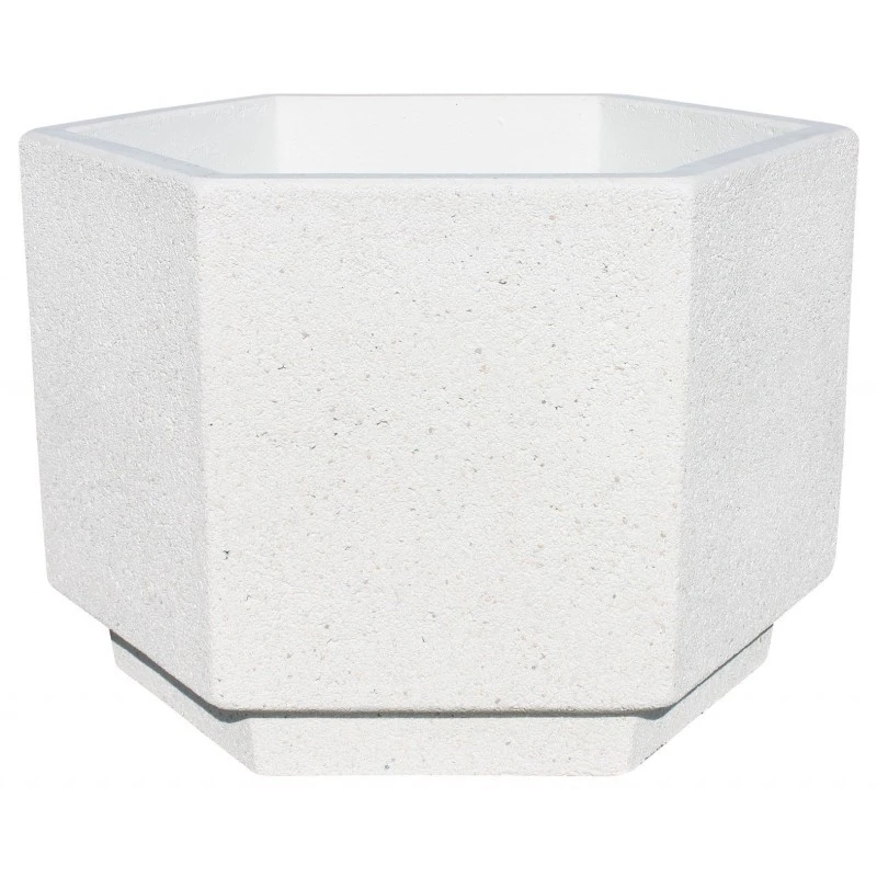 Macetero hexagonal granito "china lavada" y cantos pulidos. De diseño tradicional y resistente a las inclemencias del tiempo. Con patas incorporadas en el propio diseño. Es ideal para plantar flores de temporada y otras. Color granito blanco.