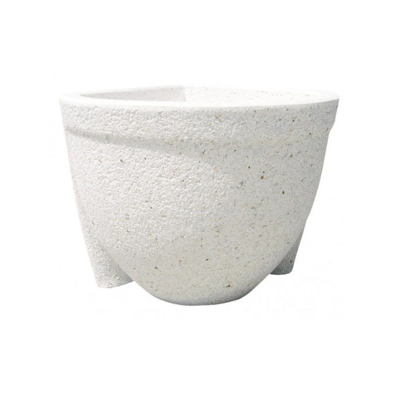 Macetero rinconera granito "china lavada" y cantos pulidos. De diseño tradicional y resistente a las inclemencias del tiempo. Con patas incorporadas en el propio diseño es ideal para plantar flores de temporada y otras. Color granito blanco.