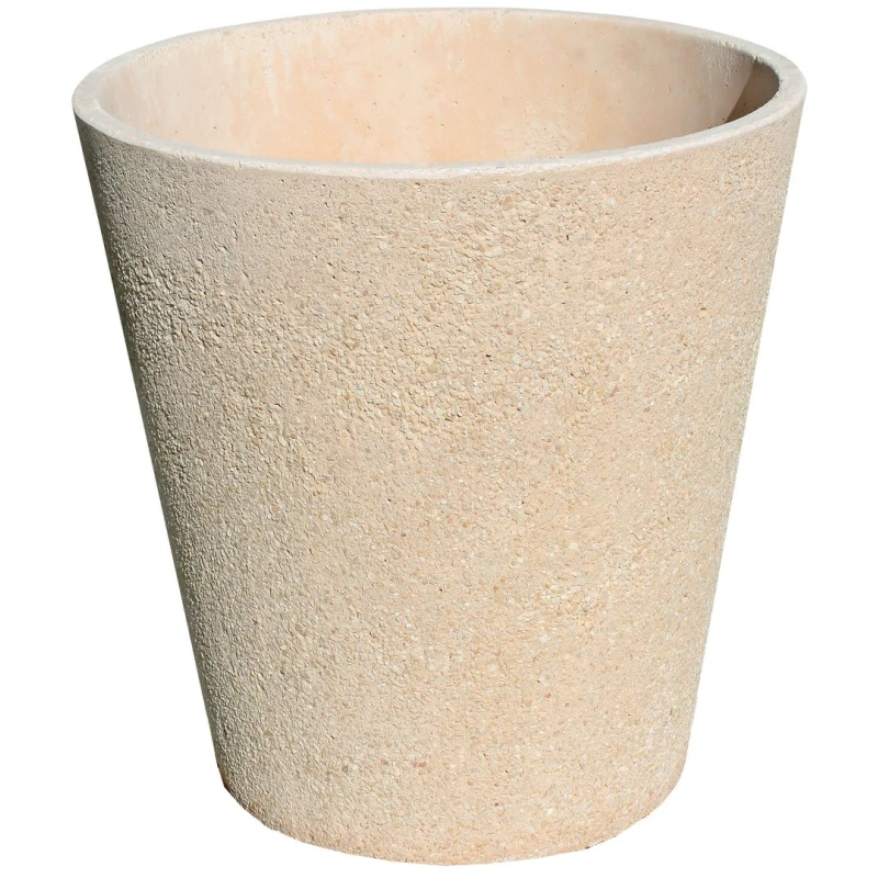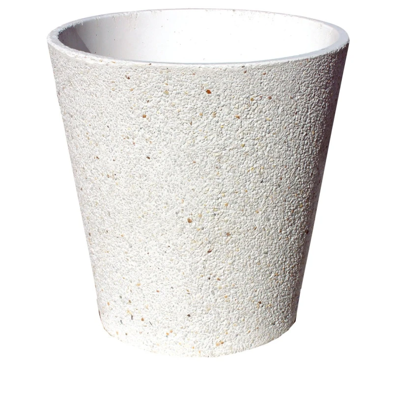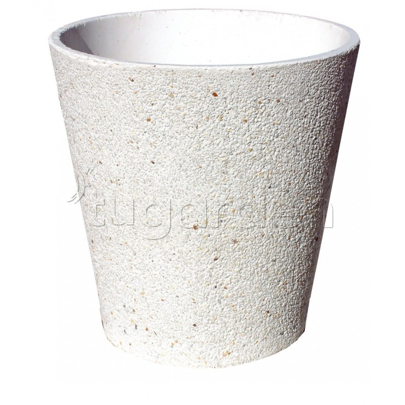 Macetero redondo granito "china lavada" y cantos pulidos. Es ideal para exteriores. Resistencia máxima a la intemperie. Colores disponibles blanco y albero.