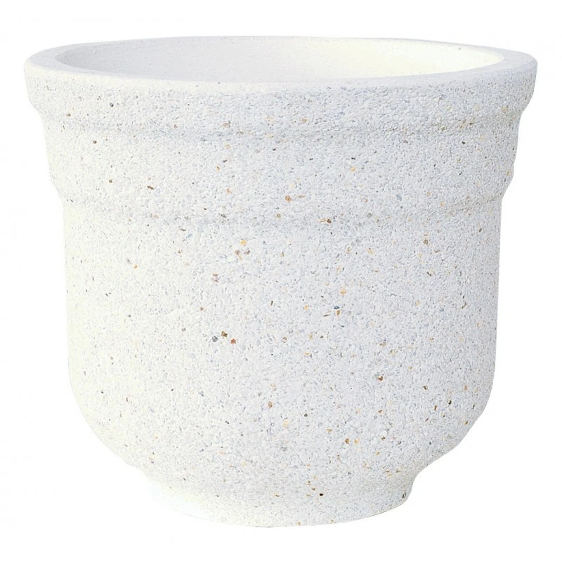Jardinera granito redonda de diseño tradicional y resistente a las inclemencias del tiempo. Ideal para plantar flores de temporada y otras. Perfecta para cualquier lugar del jardín desde un rincón a crear un ambiente especial. Color granito blanco.