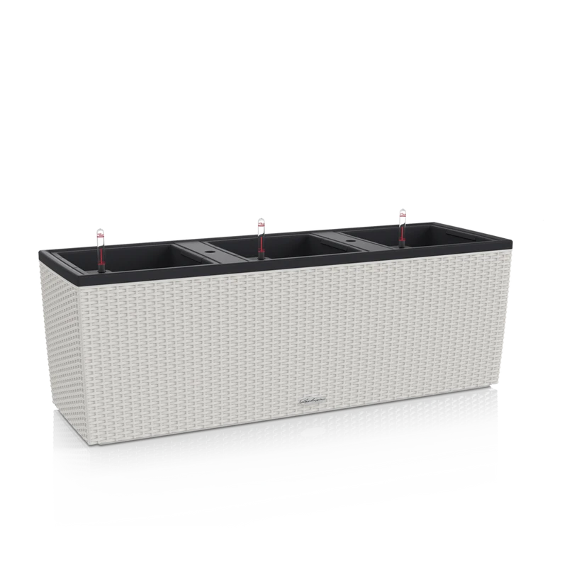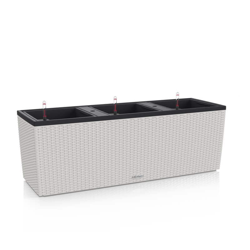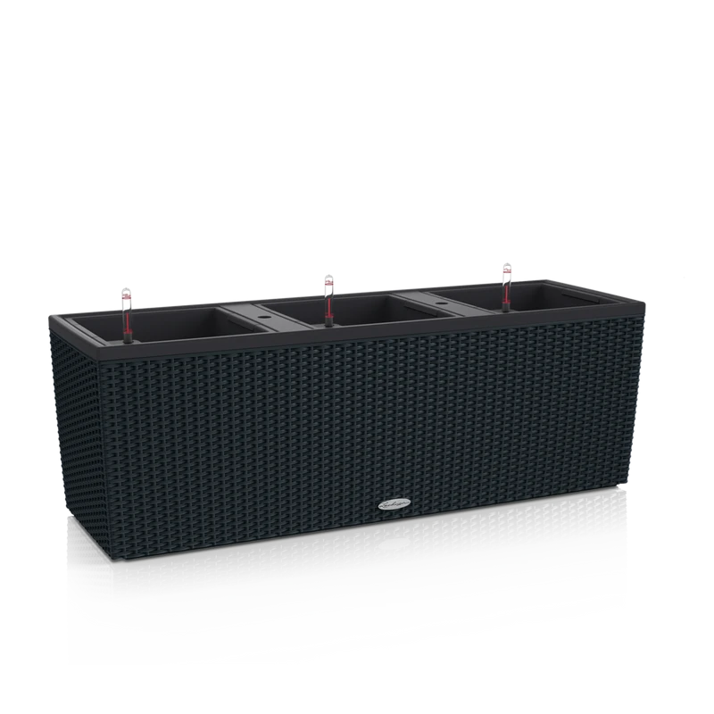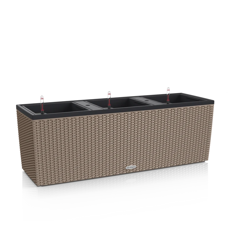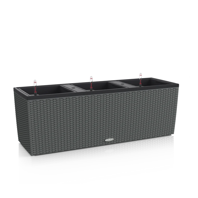 La Trio Cottage es una jardinera rectangular, dispone de 3 macetas cuadradas interiores e independientes. Su forma alargada permite de usarla como separador de terraza. Gracias al enrejado vendido en opción, el Trio Cottage puede utilizarse para plantar plantas trepadoras o cultivar frutas y verduras. Elegante y original decoración con un estilo trenzado. Colores, blanco, negro grafito, marrón arena, moca, gris claro y granito.