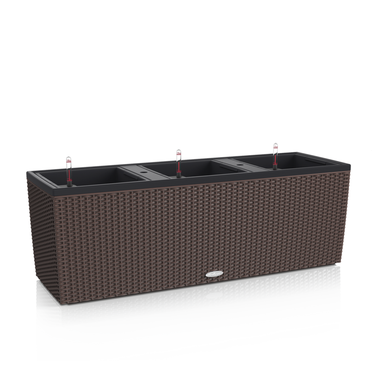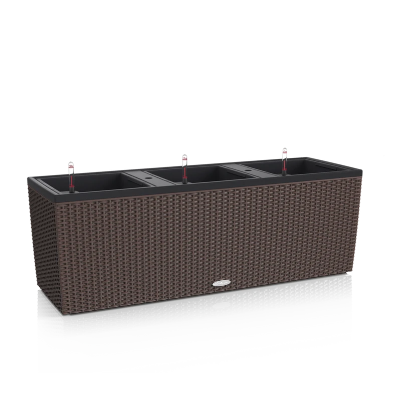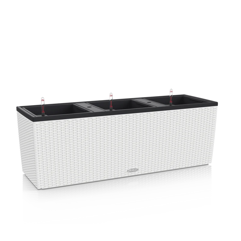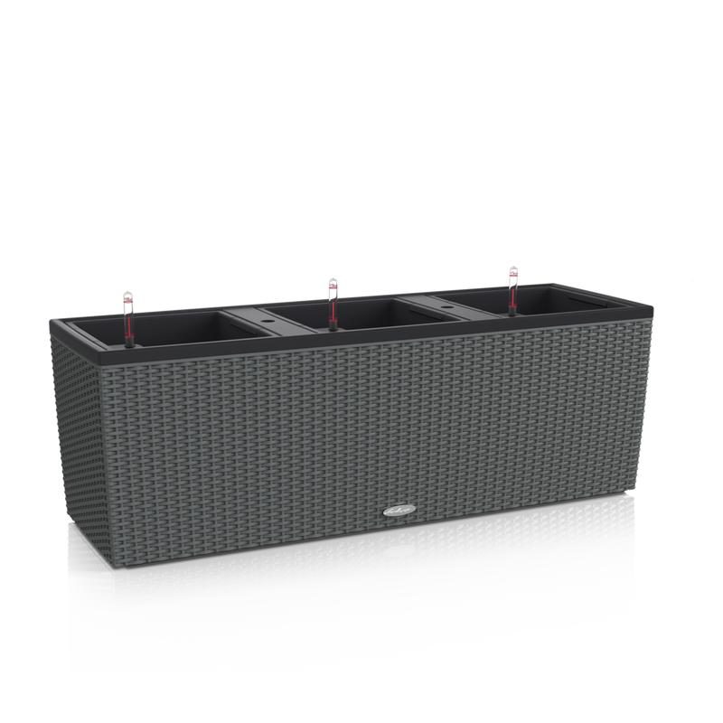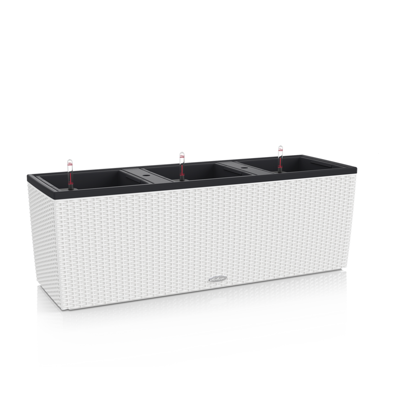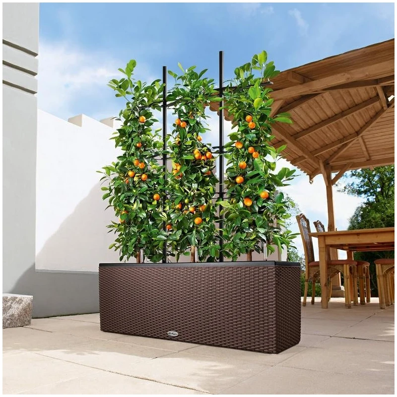 La Trio Cottage es una jardinera rectangular, dispone de 3 macetas cuadradas interiores e independientes. Su forma alargada permite de usarla como separador de terraza. Gracias al enrejado vendido en opción, el Trio Cottage puede utilizarse para plantar plantas trepadoras o cultivar frutas y verduras. Elegante y original decoración con un estilo trenzado. Colores, blanco, negro grafito, marrón arena, moca, gris claro y granito.