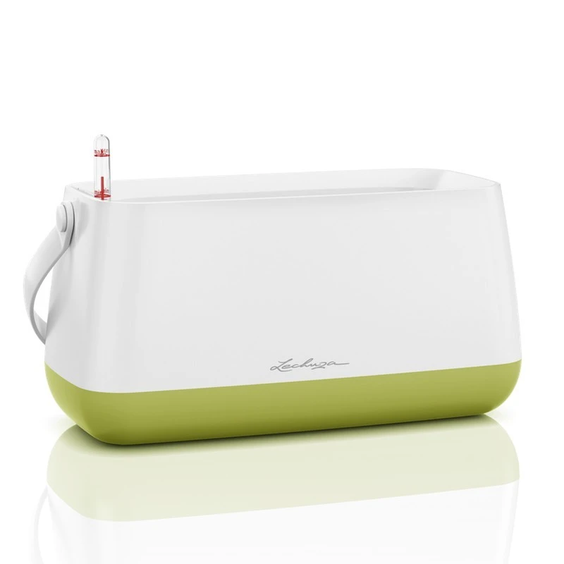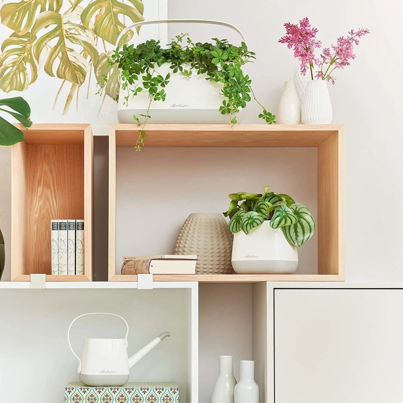 Con colores pastel armoniosos, superficies mates y formas limpias, este accesorio decorativo se puede integrar en cualquier interior. El sistema de riego proporciona a las plantas un suministro constante de agua y garantiza que se abastezcan de manera óptima durante un período de tiempo más largo.