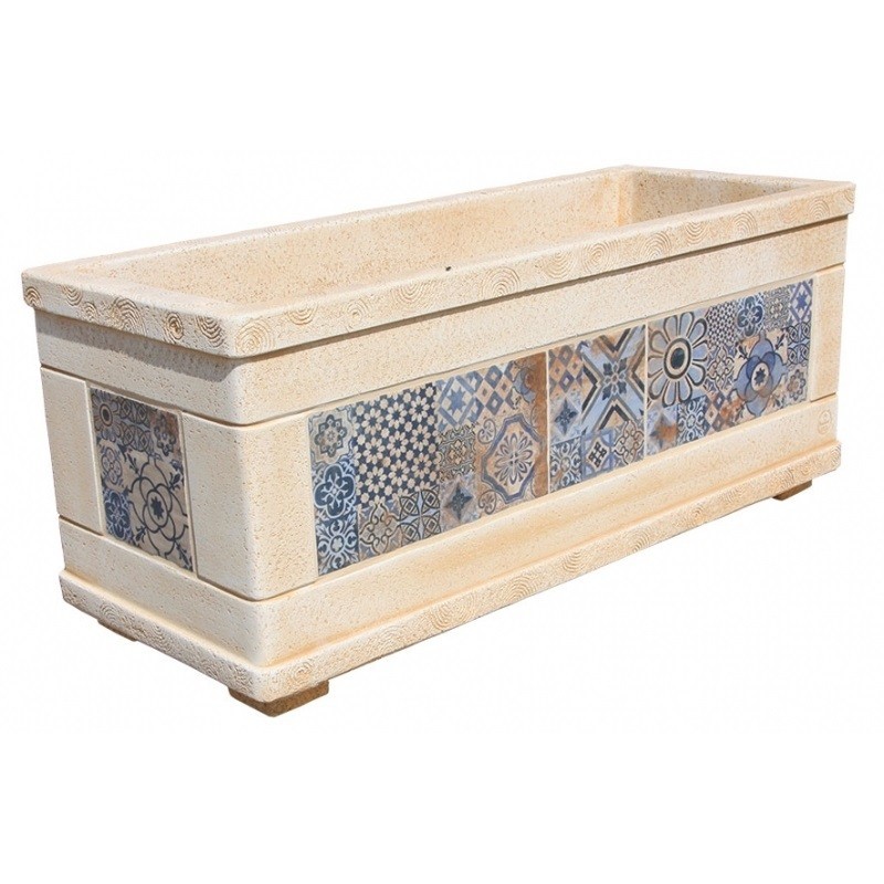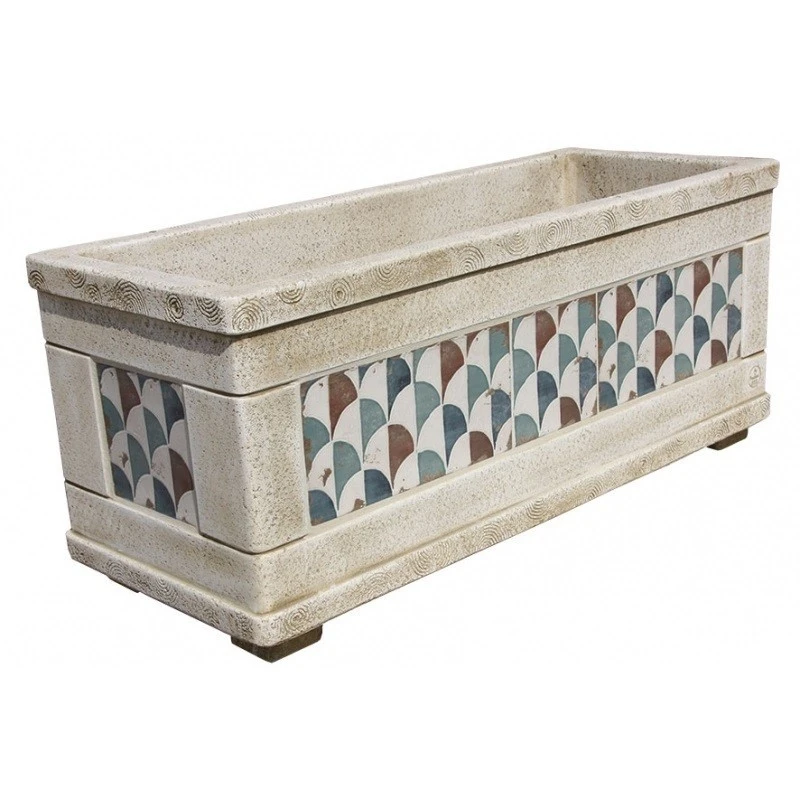 La jardinera Mirambel es ideal para darle vida a tu jardín. Al estar fabricada en hormigón, posee una gran resistencia a los factores meteorológicos. El color verde y el ocre poseen unos diseños en azulejos que los hacen vistosos.
