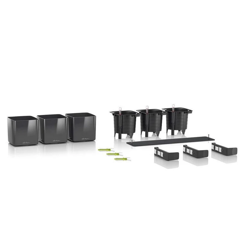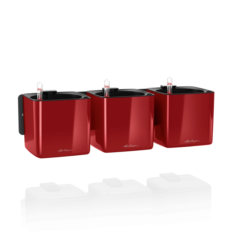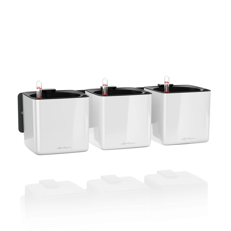 Con soportes magnéticos y barra de metal incluidos, da un estilo elegante a tus paredes. Se puede utilizar de la forma clásica para dar un toque verde a las paredes o como soporte creativo. Gracias al práctico soporte magnético, las tres Cube Color 14 se pueden unir con su correspondiente tira de metal a la pared. Los imanes extra fuertes de alta calidad garantizan una sujeción segura. Se inserta una mecha en la maceta de cultivo que transporta la humedad de manera uniforme hasta las raíces. El indicador de nivel de agua se utiliza para saber cuándo hay que volver a llenar el depósito.