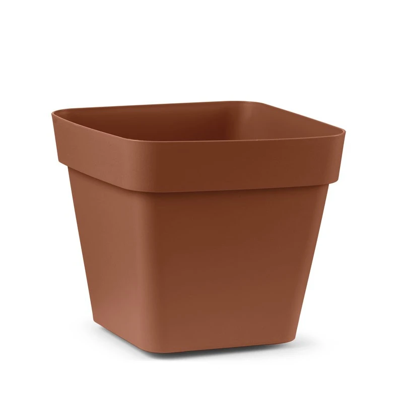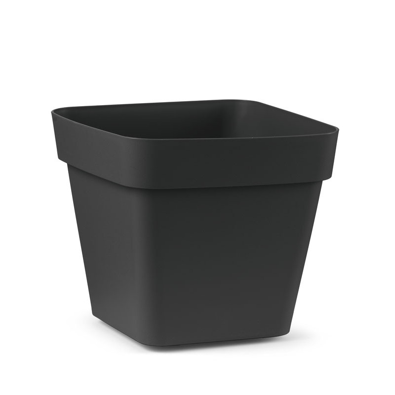 Vaso cuadrado Cleo, con diseño moderno para interiores, jardines o terrazas. Robusto y apto para cualquier con condición meteorológica, resiste a los golpes y a los agentes atmosféricos. Se suministra configurado para el uso interior gracias al práctico tapón rojo que si puesto no permite la salida de agua y de tierra. Si se desea utilizarla en el exterior basta con retirar el tapón para evitar la acumulación de agua. Gracias a los cómodos rodillos presentes sobre la base de ella. Resistente a los rayos UV. Ruedas integradas a partir de 28 cm.