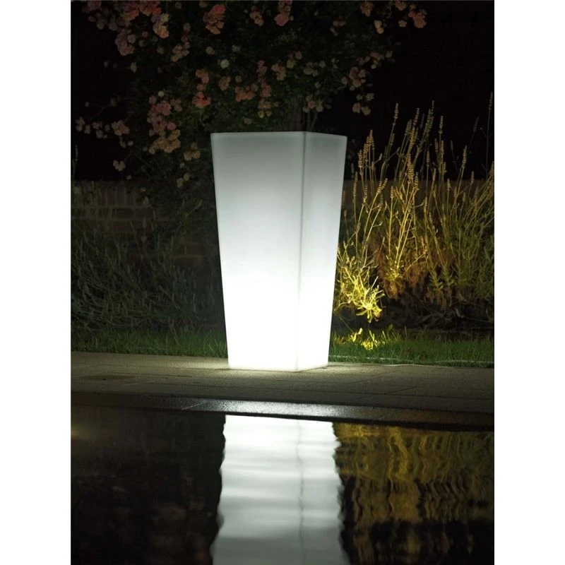 Maceta Ilie Kit Luz son funcionales de día y escenográficas de noche, con la fuerza y la belleza de la luz. De base circular y de formato alto, sus estilizadas líneas las hacen ideales para decorar espacios exteriores...